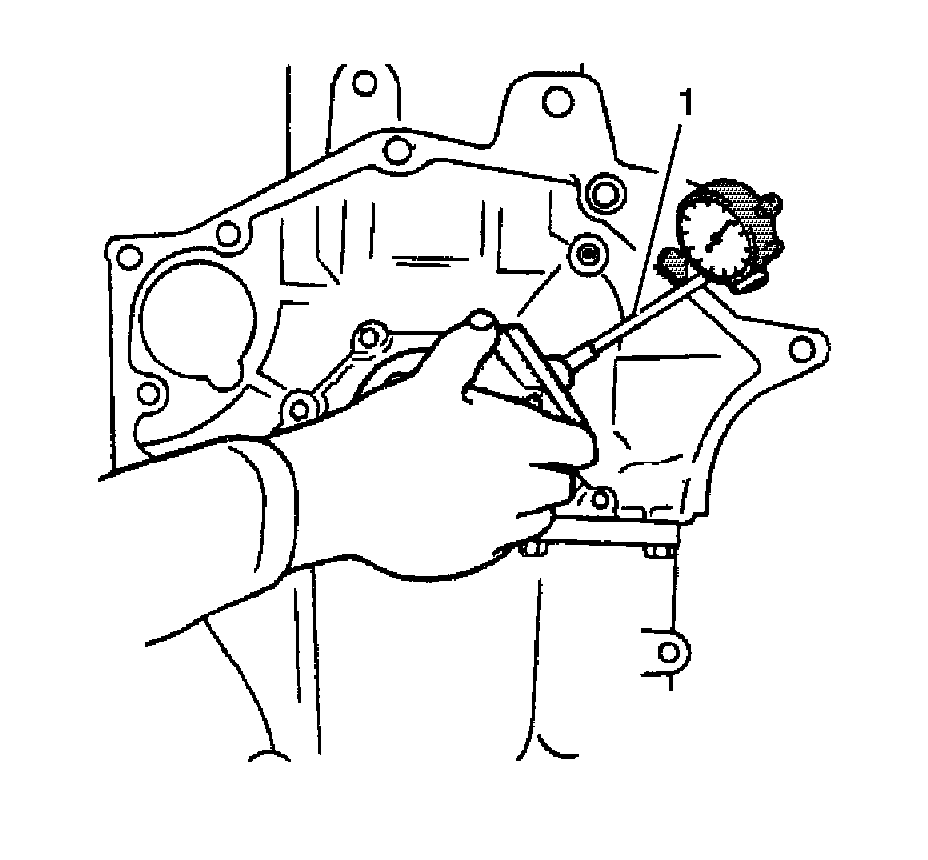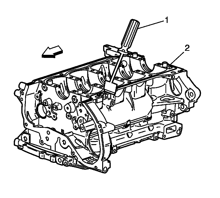 15. Inspect the crankshaft main bearing bores. Use the EN-8087 - gage (1) to measure the bearing bore concentricity and alignment. Refer to Engine Mechanical Specifications (2.2L) (Specifications).