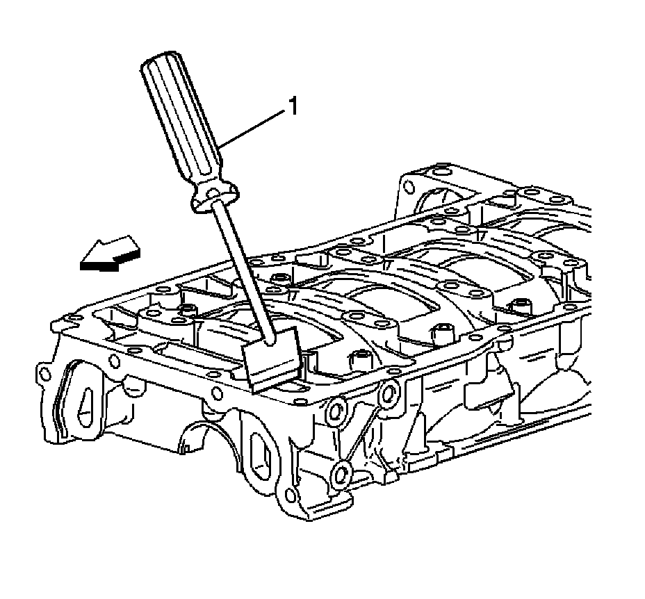 11. Clean the sealing material from the gasket mating surfaces on the lower crankcase oil pan side with a suitable tool (1).