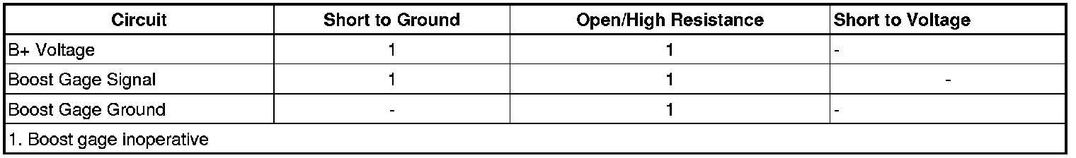 • If the boost gage does not perform a self test, test the boost gage signal circuit terminal C for a short to ground or an open/high resistance. If the circuit tests normal, replace the PCM.