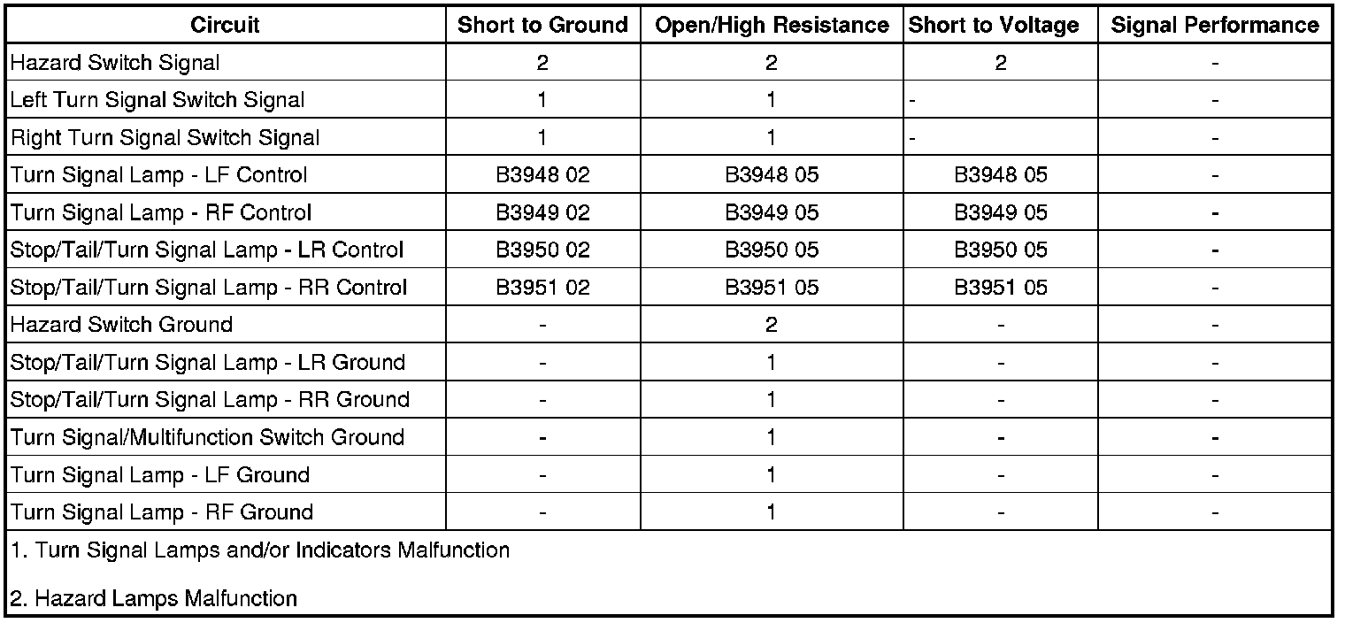 Turn Signal Lamps Malfunction