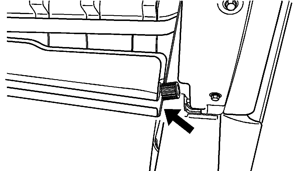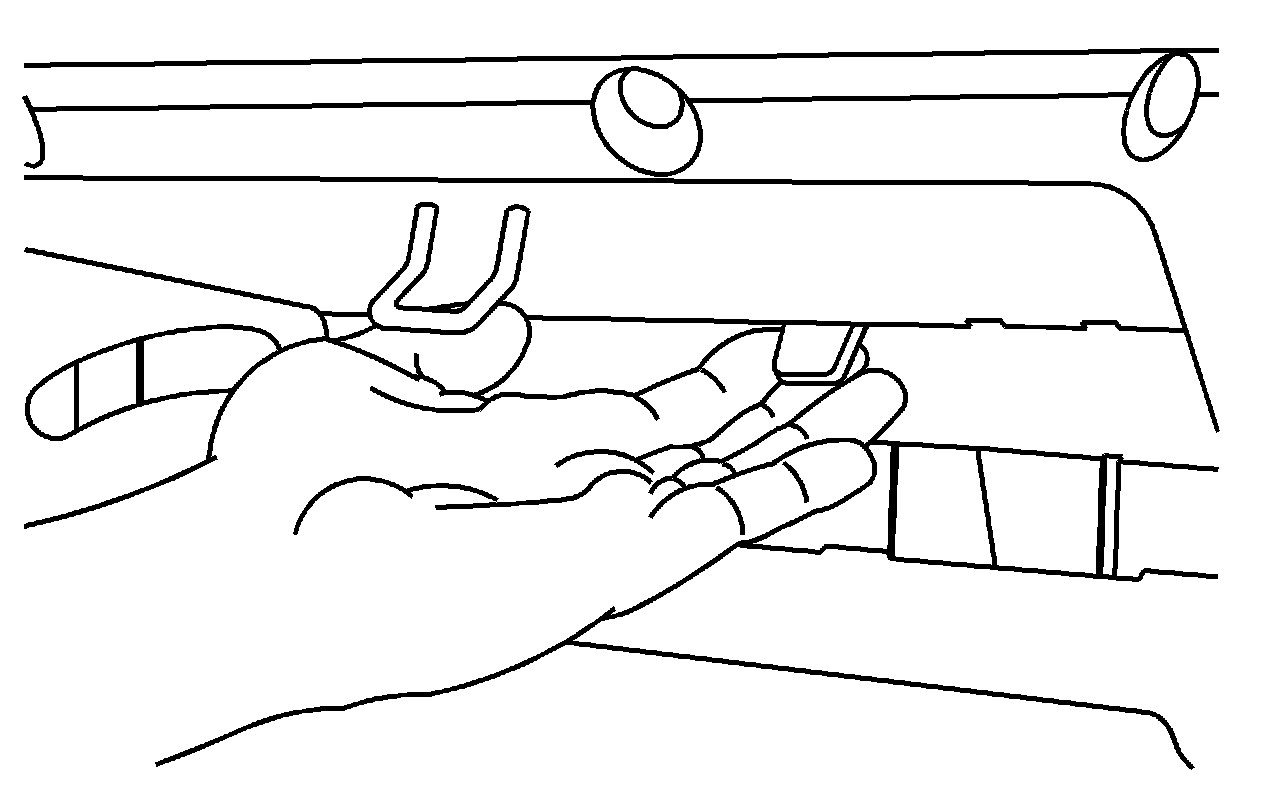 2. Tilt the glove box door down by squeezing on each side of the glove box until the door can be lowered from its track. Lower the glove box door.