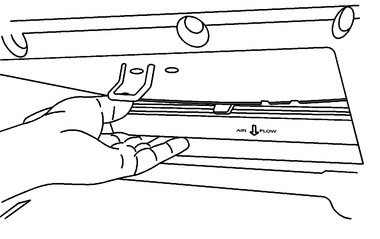 When installing a new air filter make sure the AIR FLOW arrow is pointing downward. Reverse Steps 1 through 5 making sure the glove box door goes back into place.
