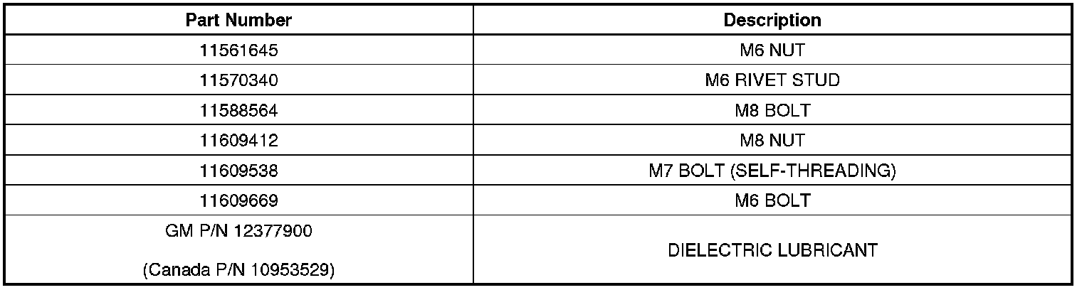 Use only the GM-approved replacement fasteners with conductive finish for electrical ground repair.