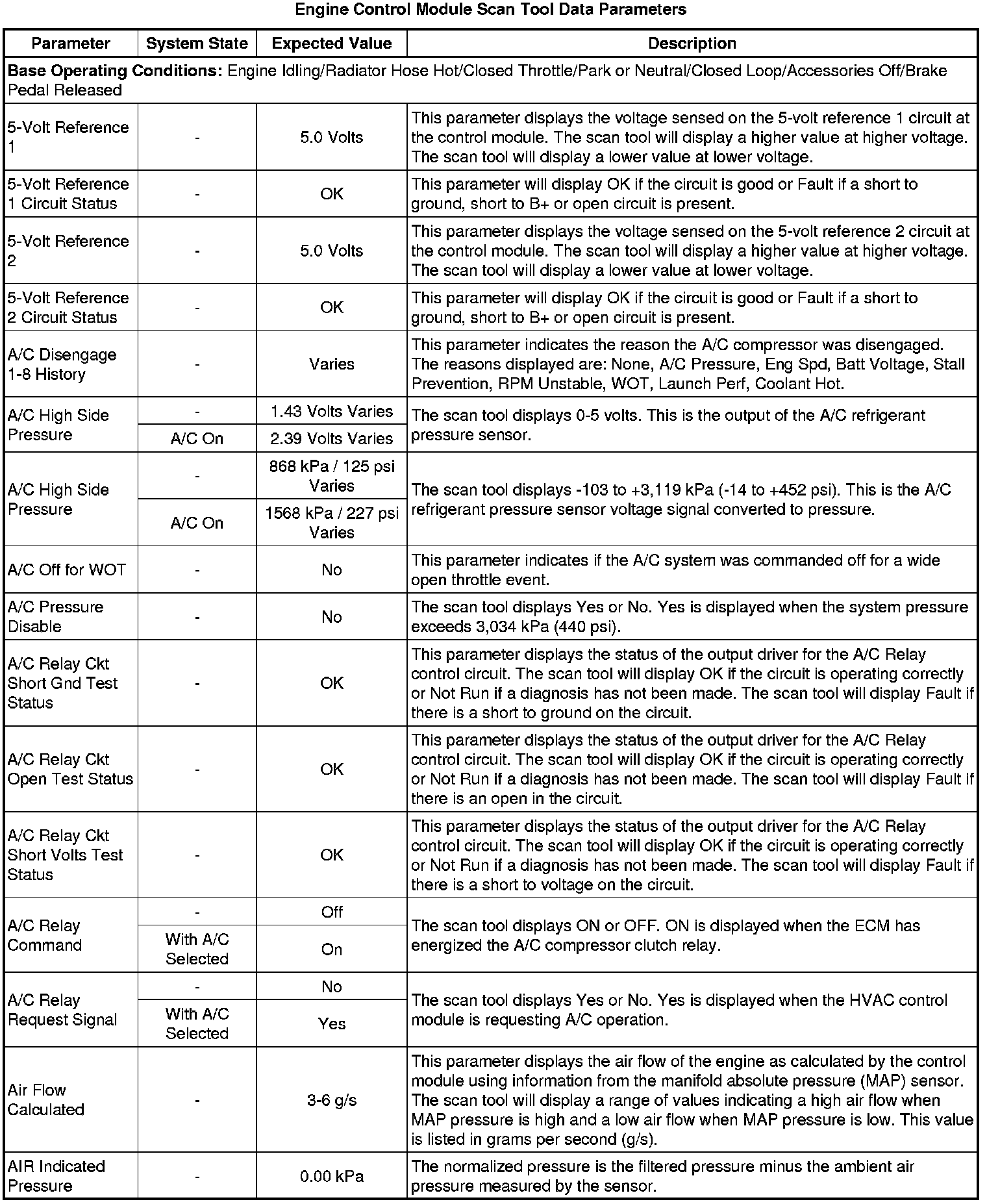 The scan tool values from a properly running engine may be used for comparison with the engine you are diagnosing. The Engine Scan Tool Data List represents values that would be seen on a normally running engine.