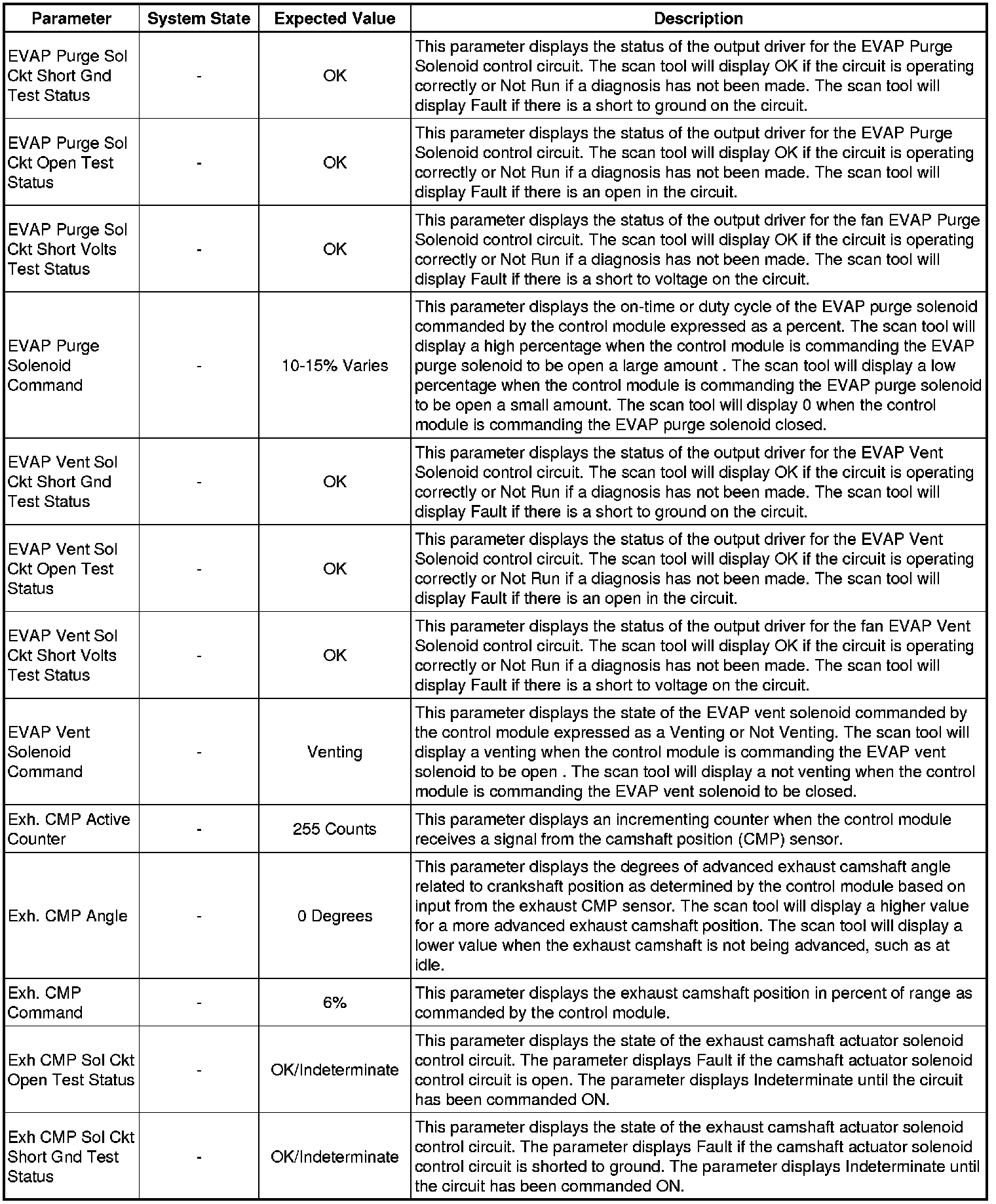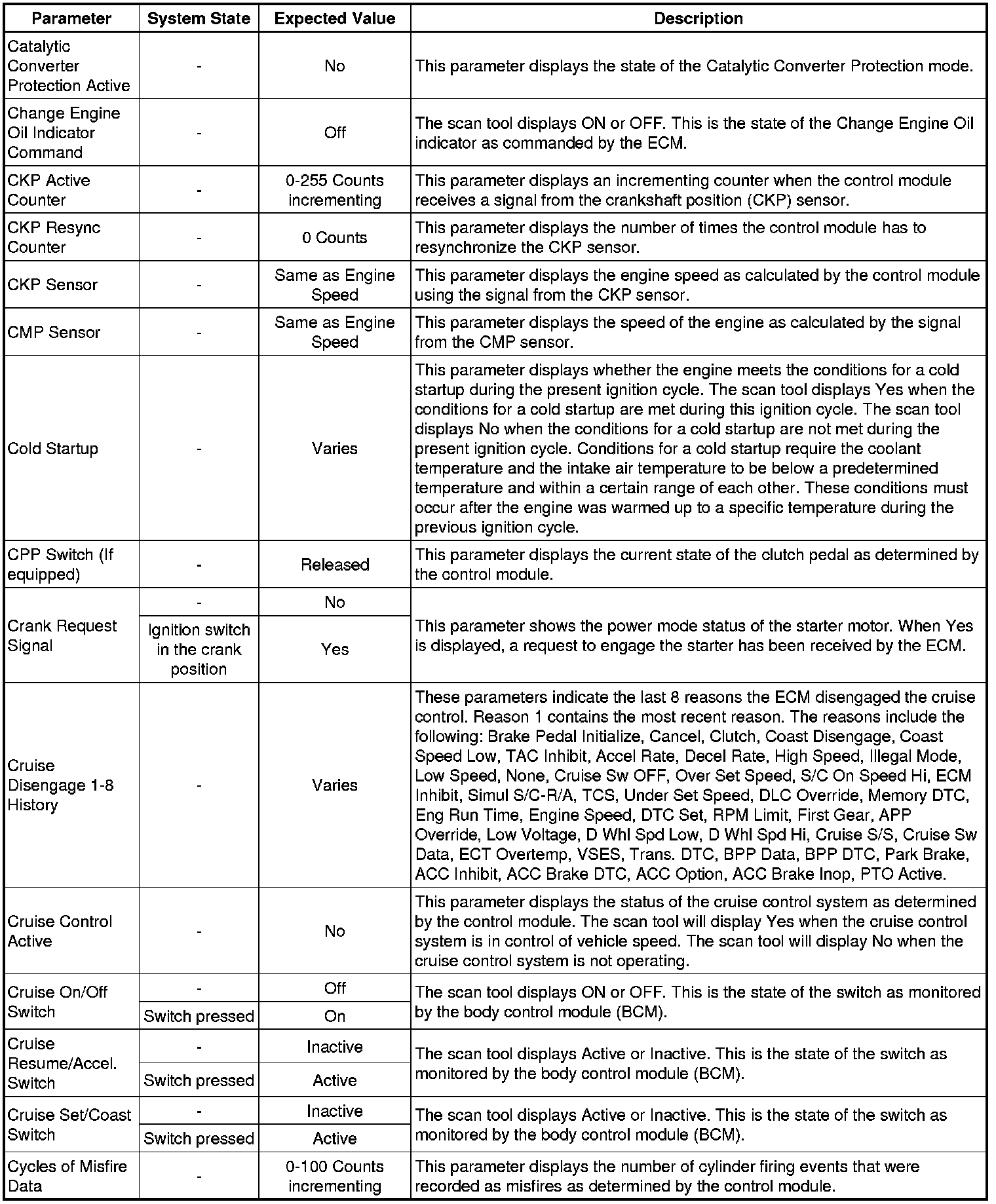 The Engine Control Module Scan Tool Data List contains all engine-related parameters that are available on the scan tool. The list is arranged in alphabetical order. A given parameter may appear in any one of the data lists, and in some cases may appear more than once, or in more than one data list in order to group certain related parameters together.