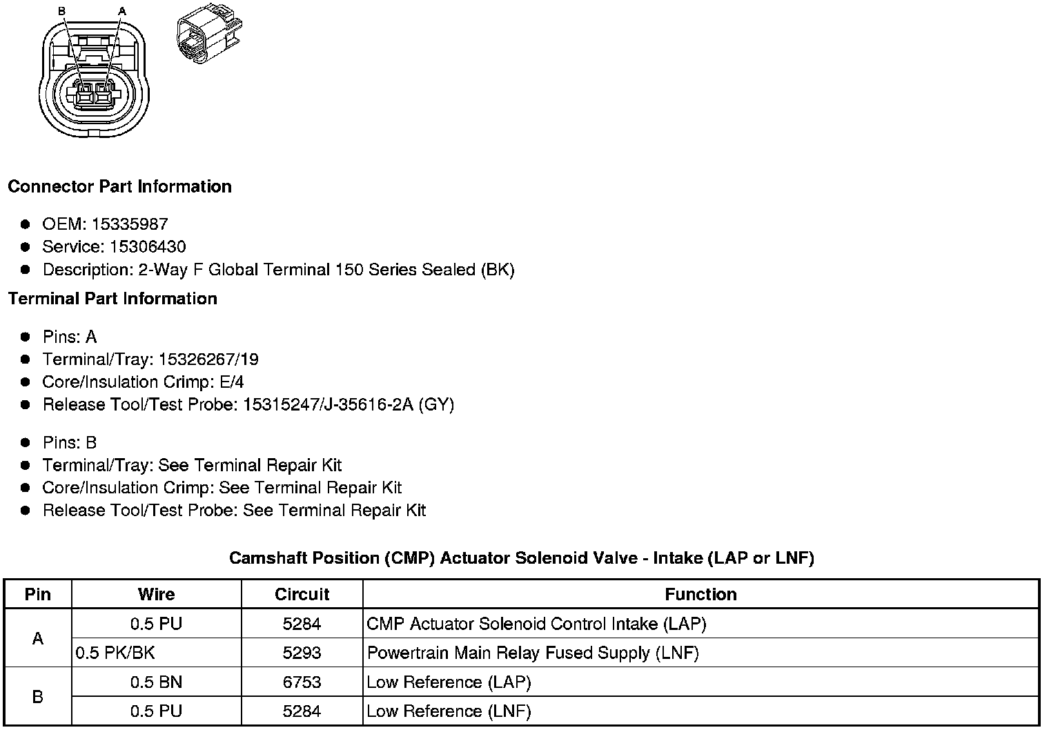 Position (CMP) Actuator Solenoid Valve - Intake (LAP or LNF)