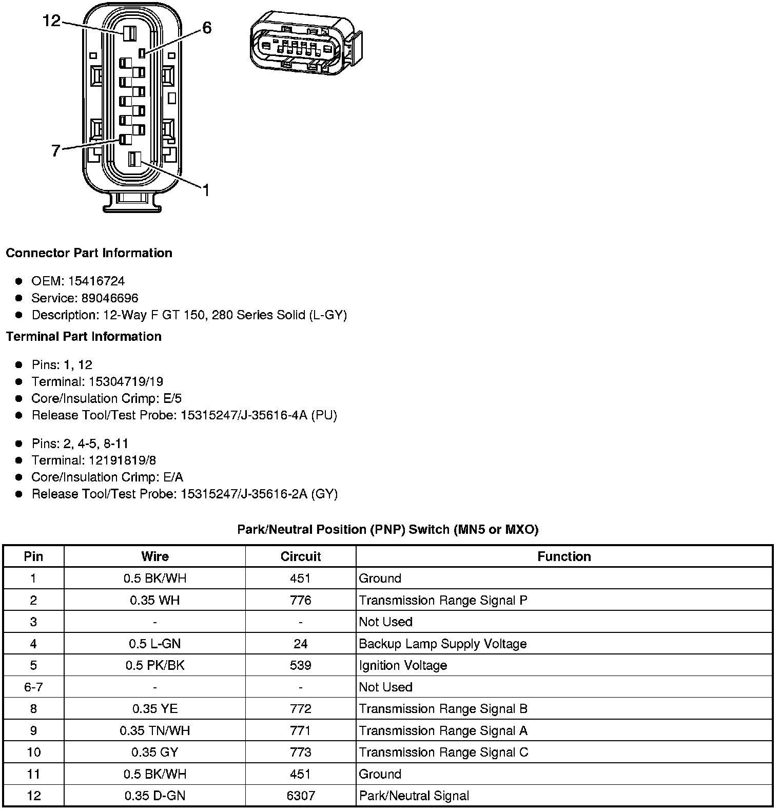 Park/Neutral Position (PNP) Switch (MN5 or MXO)