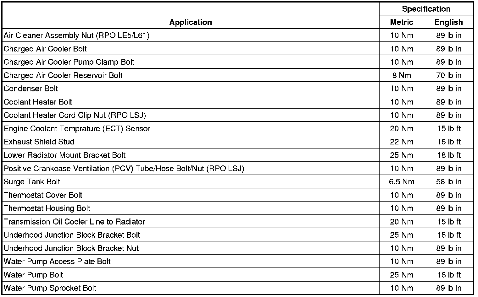Fastener Tightening Specifications