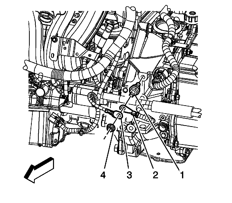 17. Install the engine harness ground nut (4) and tighten to 17 Nm (13 lb ft).