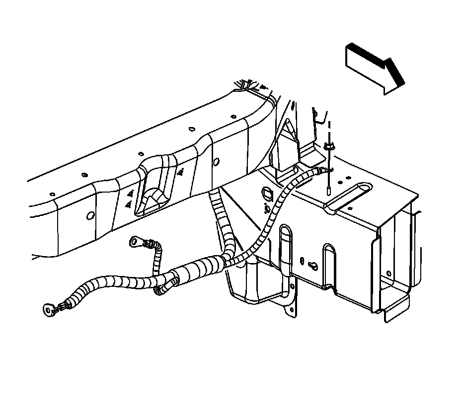 5. Install the battery cable ground nut to the stud on the side rail and tighten to 20 Nm (15 lb ft).