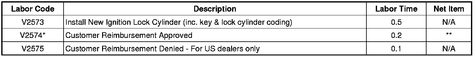 * If the customer has already had the ignition lock cylinder replaced, no additional repair is required. This labor code will close the program.