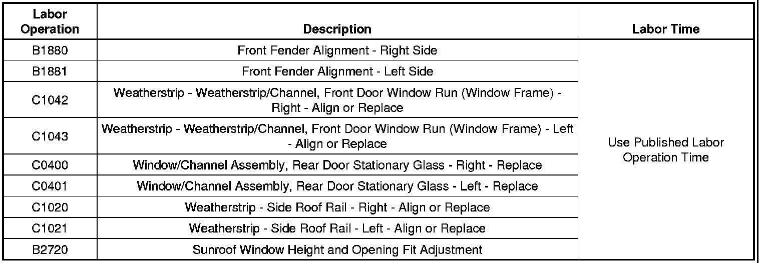 Subject: Wind Noise from Door Glass, B Pillar or Sunroof Area and/or Front Fender Rattle (Repair/Align Components)