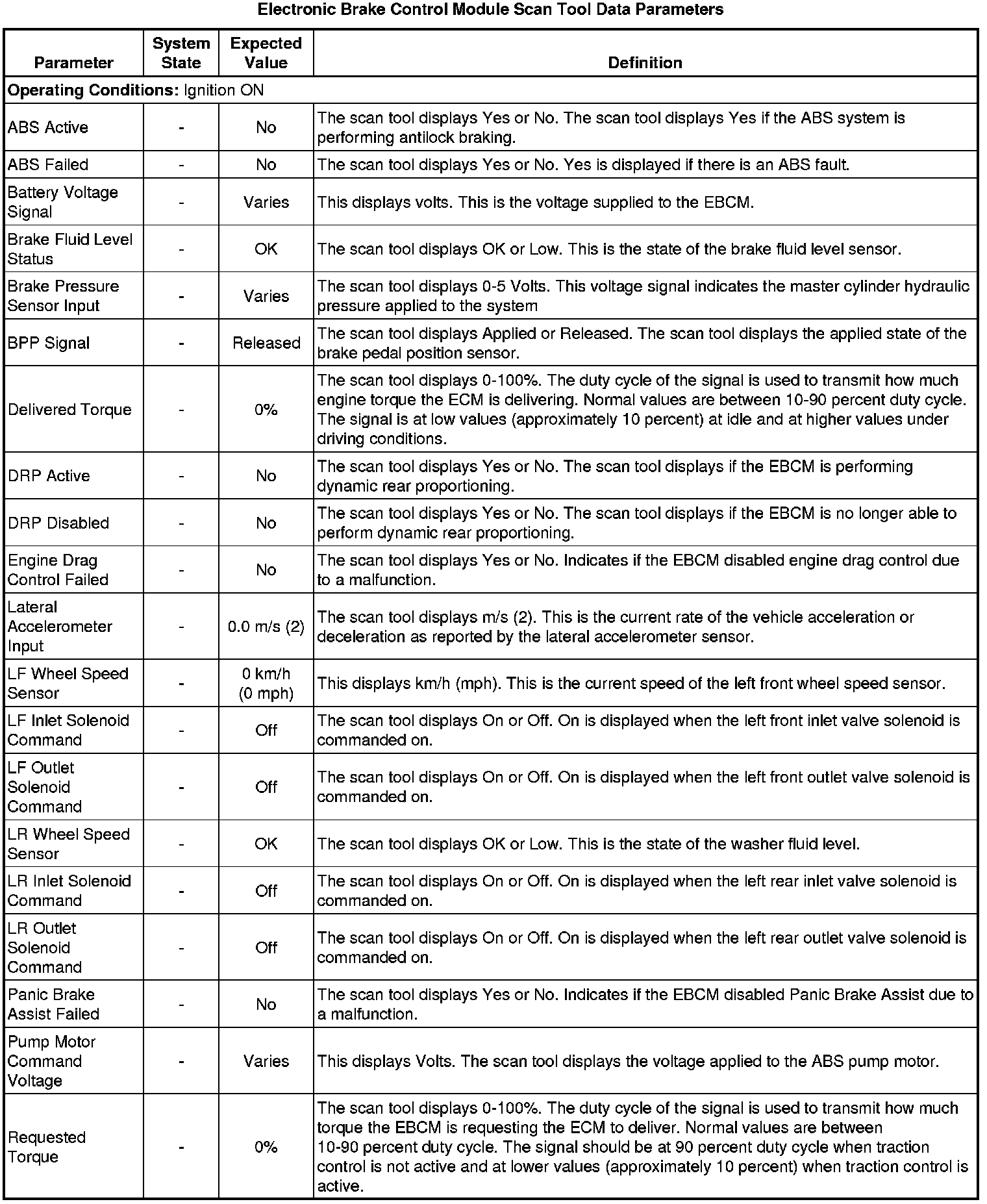 Electronic Brake Control Module Scan Tool Information