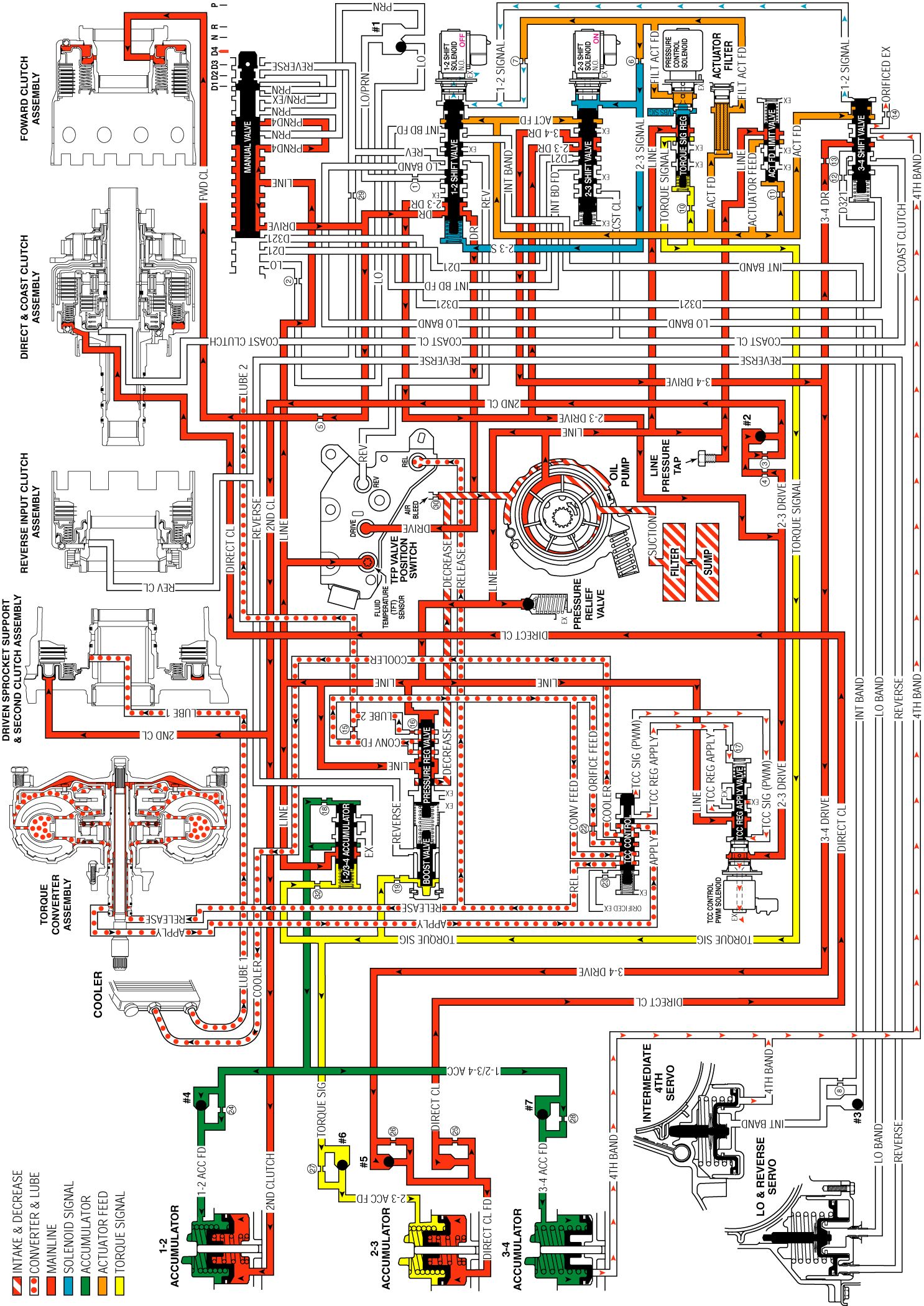 During the downshift, except for a coastdown, the PCM senses the increase in the throttle position or the engine load. When this occurs the PCM increases the PCS duty cycle. The increase in duty cycle increases the output fluid pressure from the PCS, thereby increasing the torque signal fluid pressure at the torque signal regulator valve.