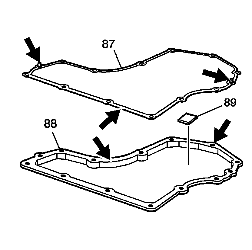 4. Install the gasket (87) and bottom pan (88) onto the transmission case.