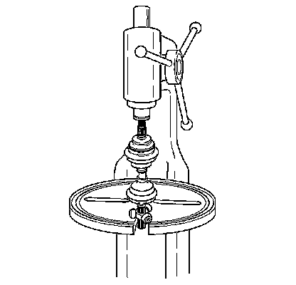 17. Lower the arbor press head onto the CV joint assembly until the press cannot move any further. This ensures that the retaining ring engages in the inner race. Do not exceed 1 779 N (4,000 lb) press load during assembly.