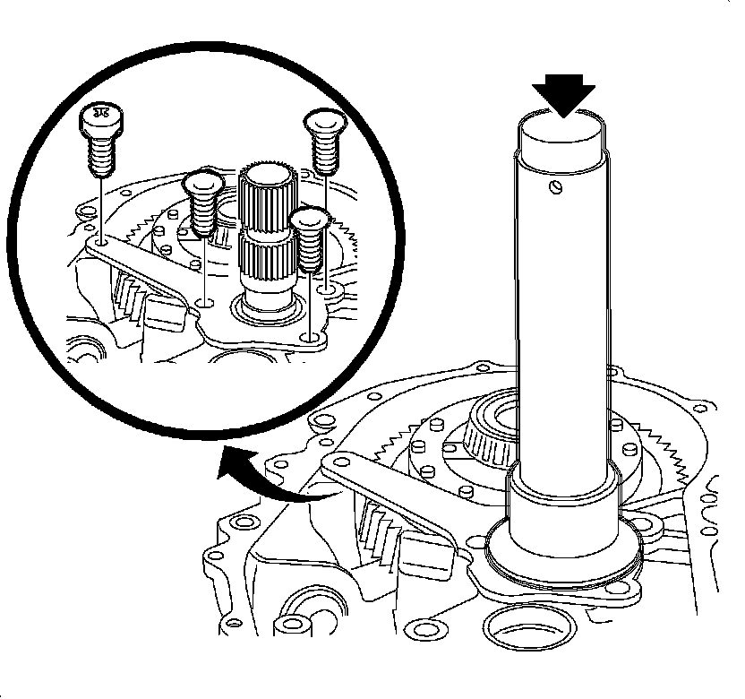 Caution: Do not forget to remove the milled bearing race. Leaving it in will damage the transaxle.