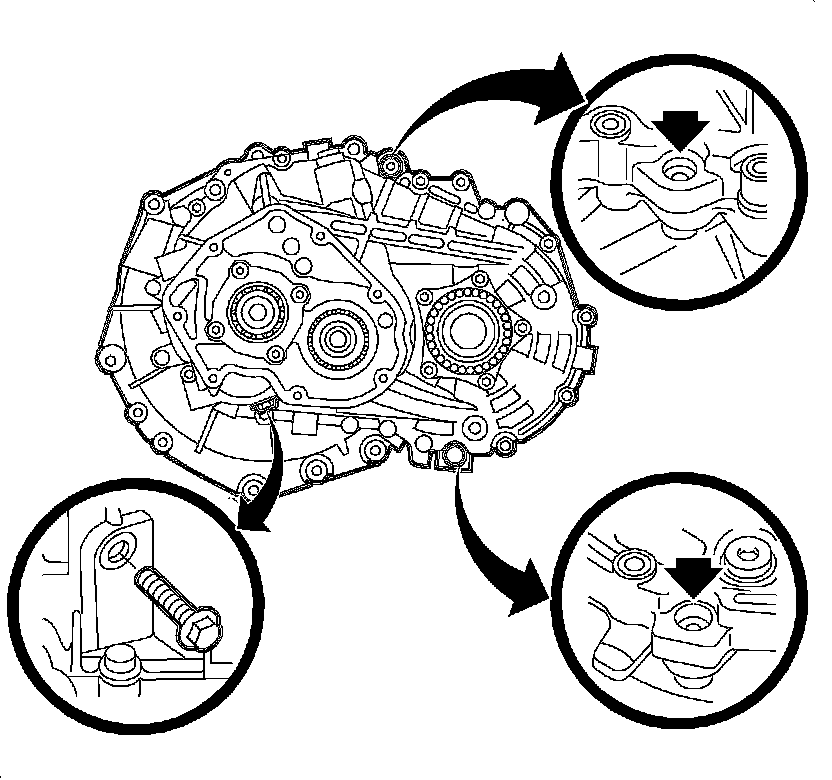 68. Tighten the differential bearing retainer bolts and tighten the differential bearing retainer-to-transaxle bolts to 24 Nm (18 lb ft).