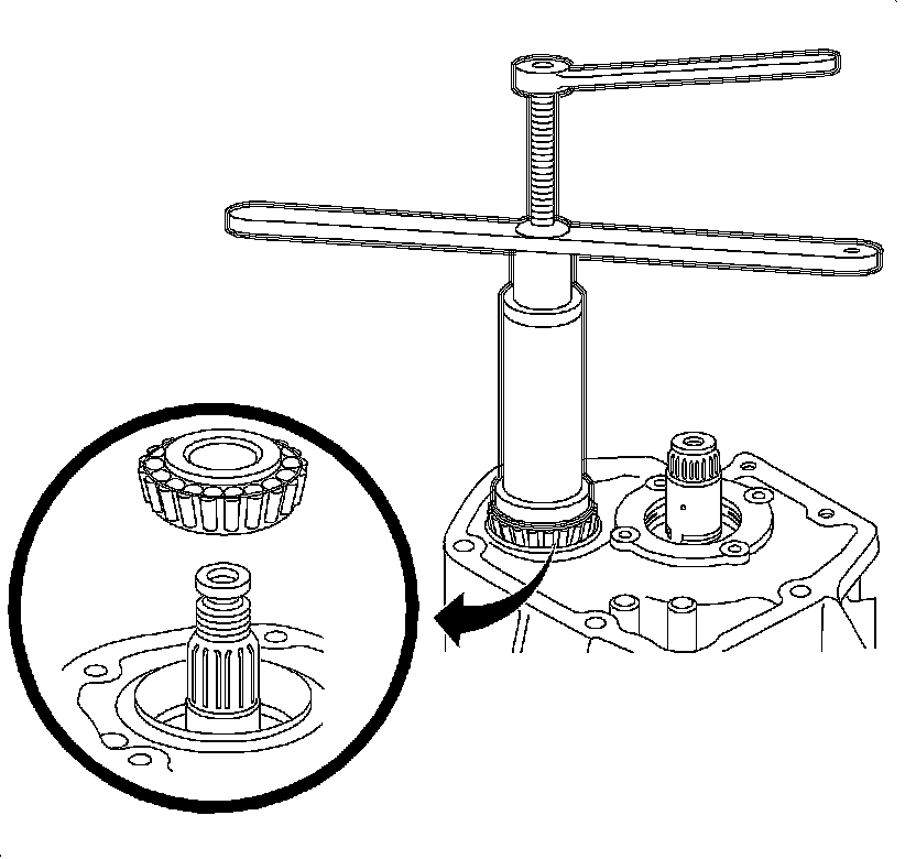 35. Lubricate and install the output shaft bearing using the 87 91 261 - shaft remover. Tighten the 87 91 261 - shaft remover until a solid stop is felt. Do not compress the sleeve.