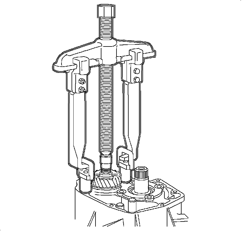 38. Carefully tighten the puller until the remaining output shaft gears are up far enough to allow the removal of the input shaft, approximately 15 mm (0.6 in).