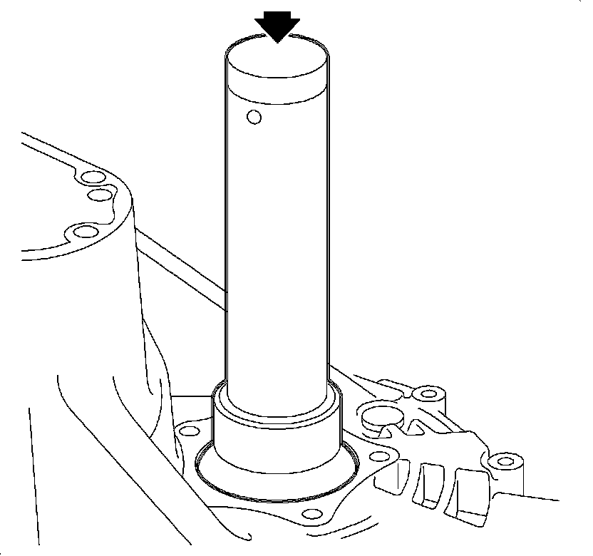 12. Engage the 5th gear by pressing the synchronizer sleeve and fork down onto the 5th gear. Two gears must be engaged at the same time to allow removal of output shaft nut.