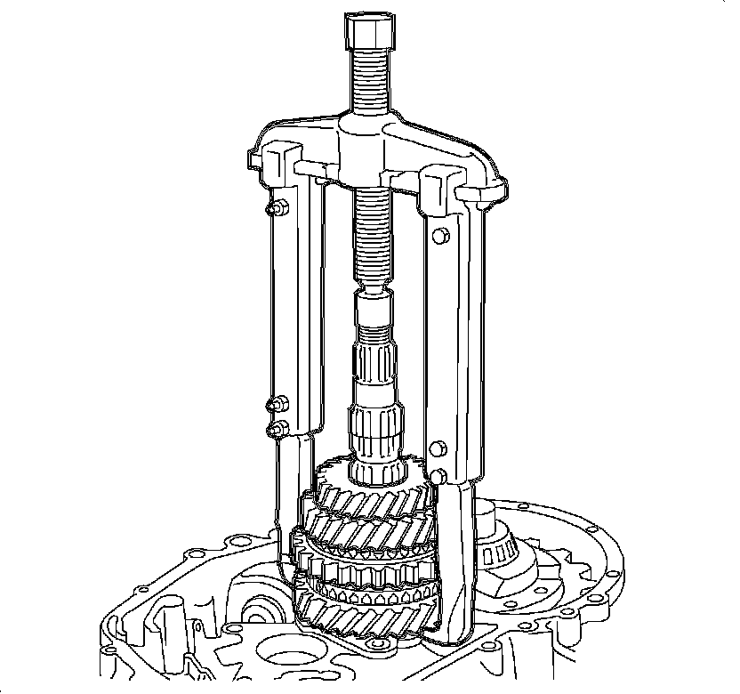5. Carefully tighten the puller until the output shaft bearing and 5th driven gear releases from the output shaft.