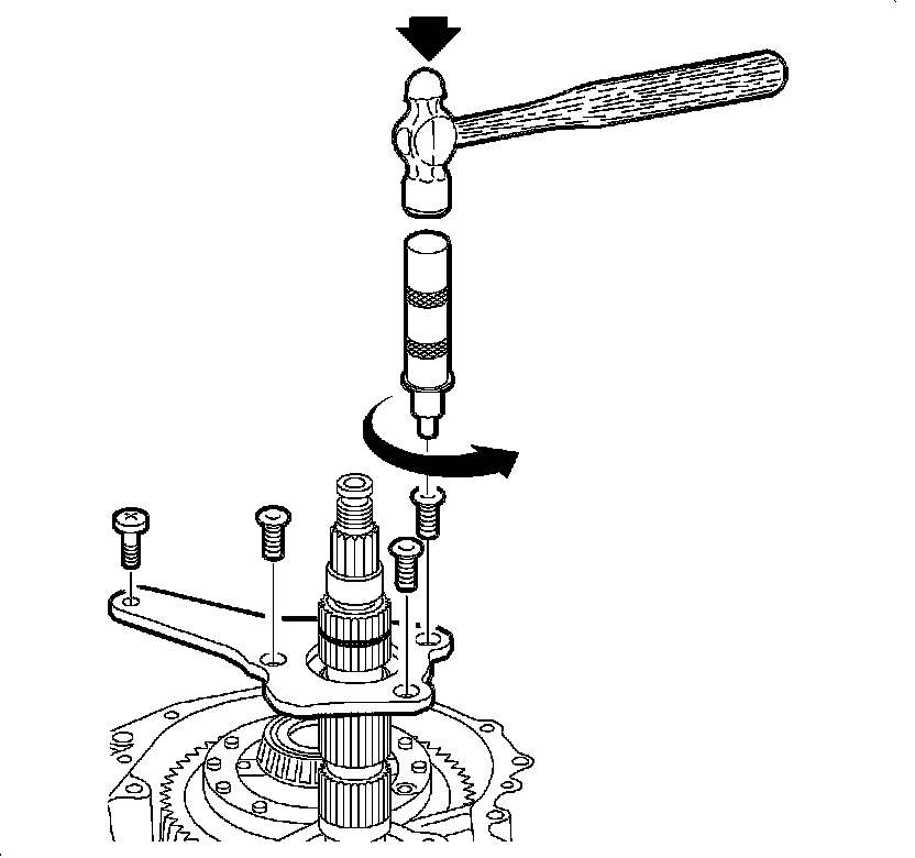 Caution: The output shaft bearing retainer bolts were installed using a threadlocker at the factory. A J43483 impact driver or equivalent must be used to remove these bolts or the bolt heads may strip out requiring additional repair time.