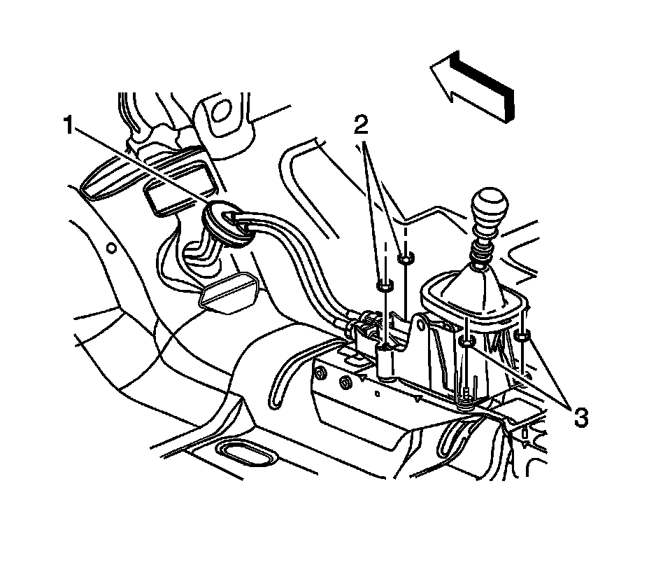4. Remove the 2 rear mounting nuts (3) and the shifter.