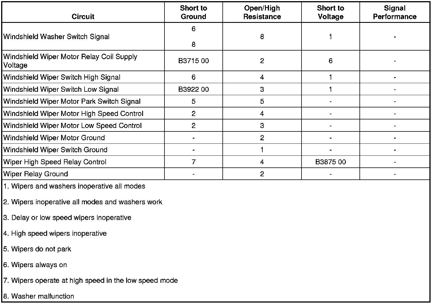 2. A short to B+ on any of the wiper/washer switch signal circuits will open the ground trace in the wiper switch.
