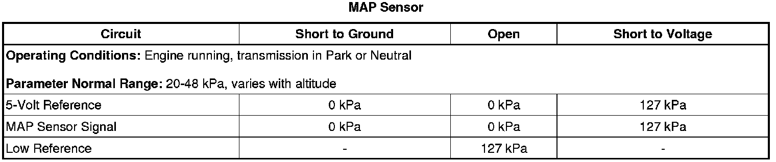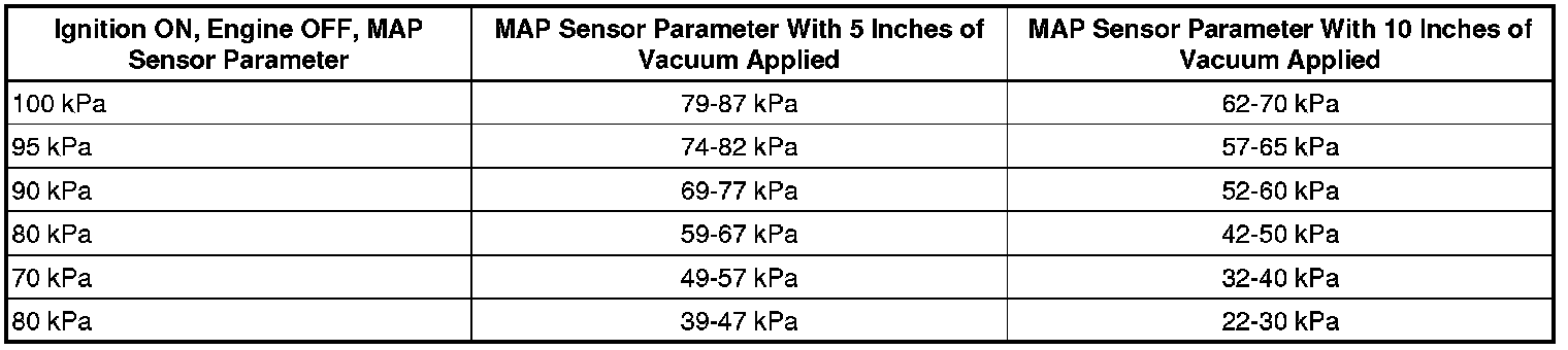 3. Use the observed MAP Sensor Scan Tool parameter that is closest to a value that is indicated in the first column.