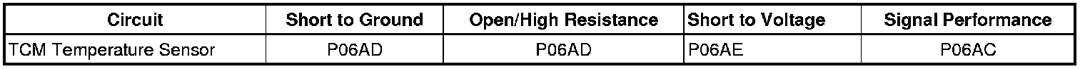 * DTC P06AD detects a constant low temperature of the TCM power-up thermistor due to an open or short to ground.