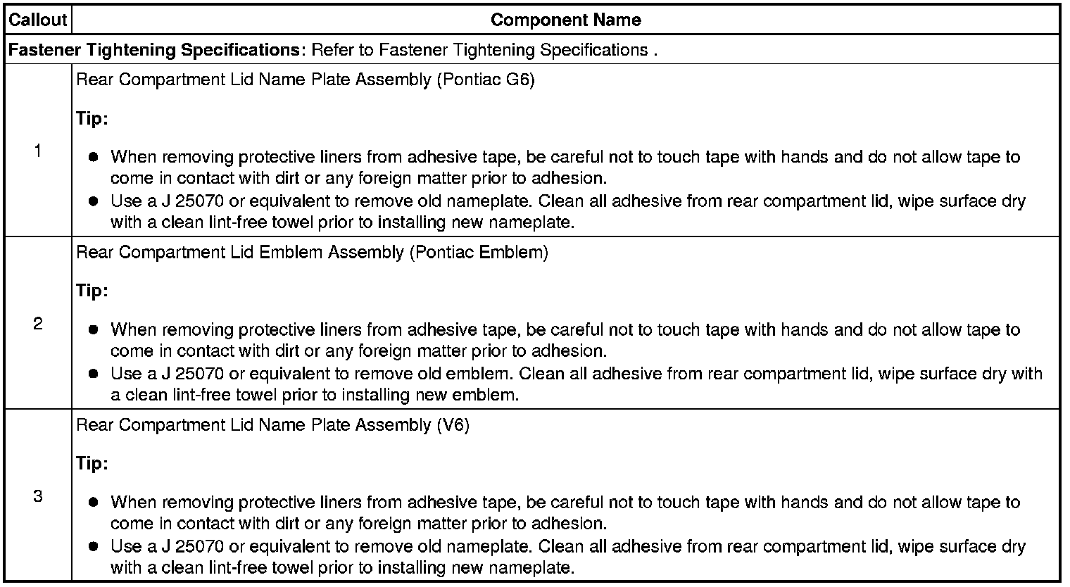 Rear Compartment Lid Emblem/Nameplate Replacement (Sedan)
