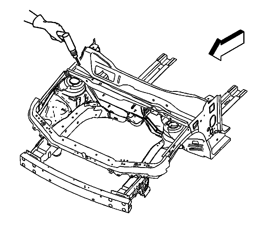 5.Remove the sealers and anti-corrosion materials from the repair area, as necessary. Refer to Anti-Corrosion Treatment and Repair .