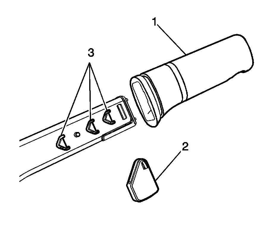 5. Inspect and carefully remove any debris remaining from the lever barbed retainer openings (3) along the park brake lever release rod.