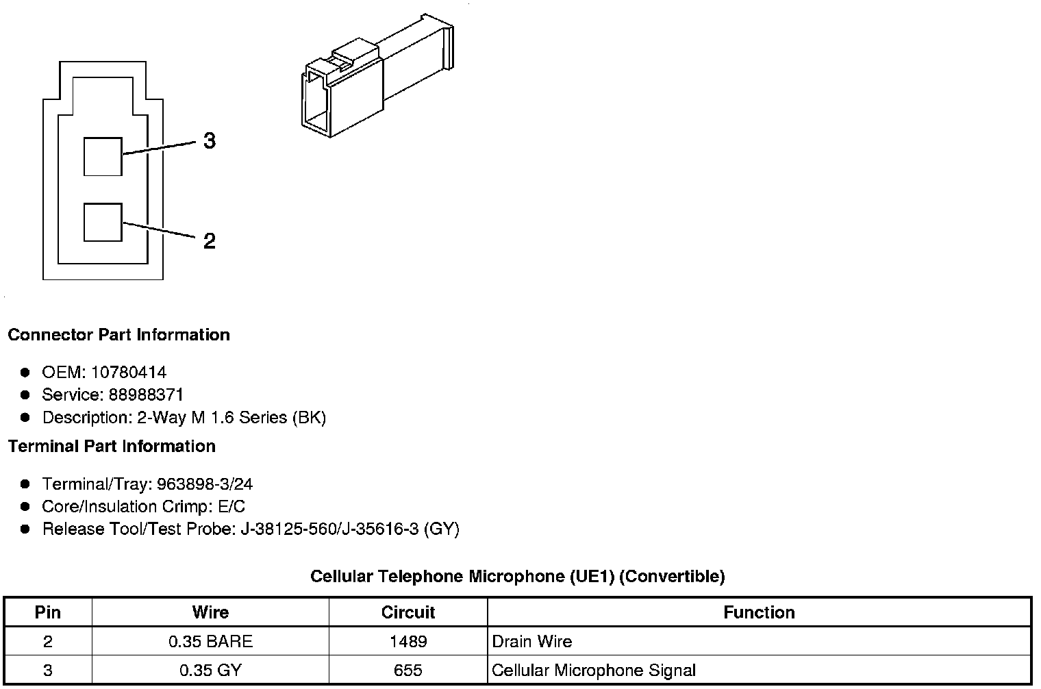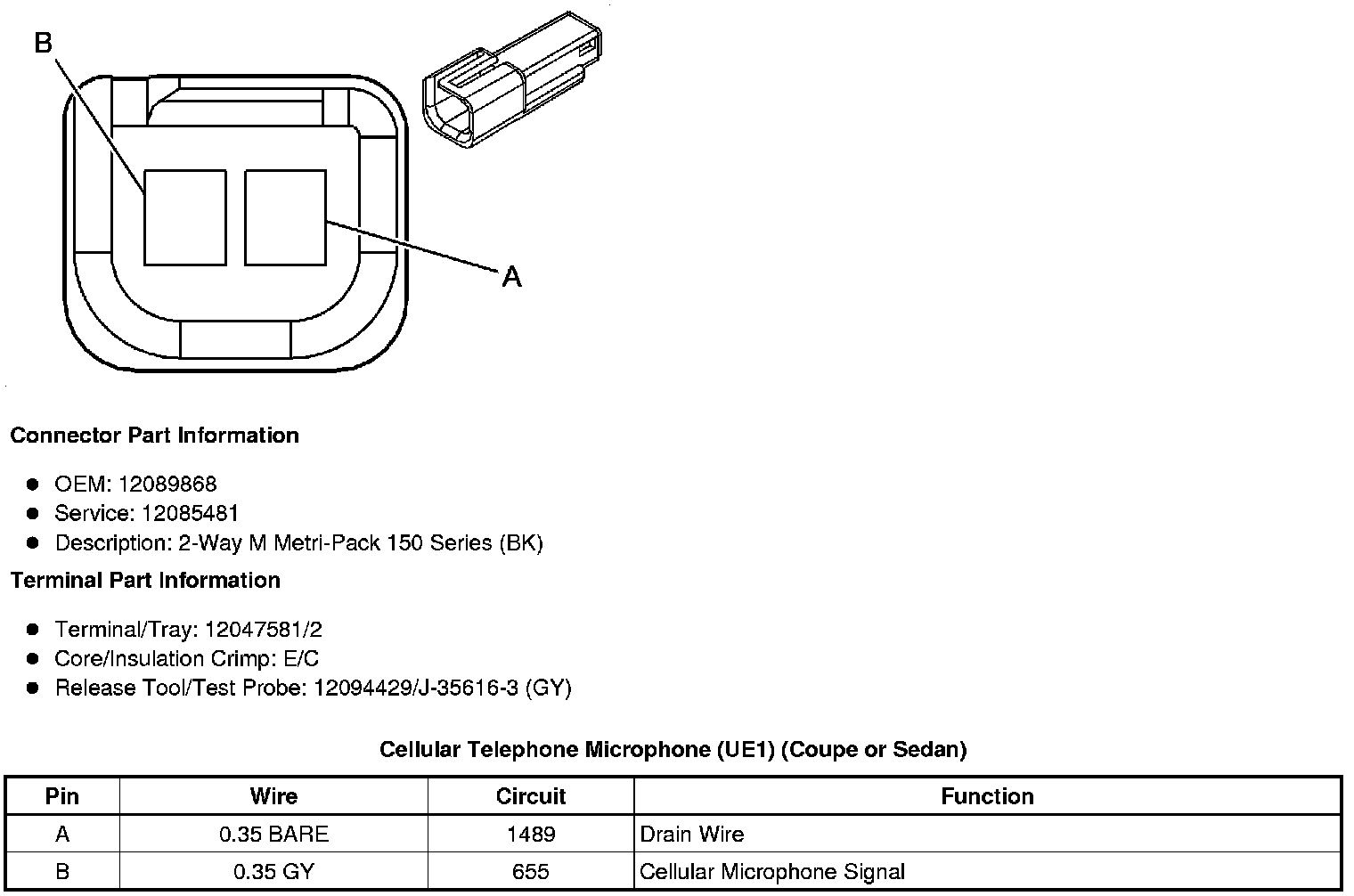 Cellular Telephone Microphone (UE1) (Coupe or Sedan)