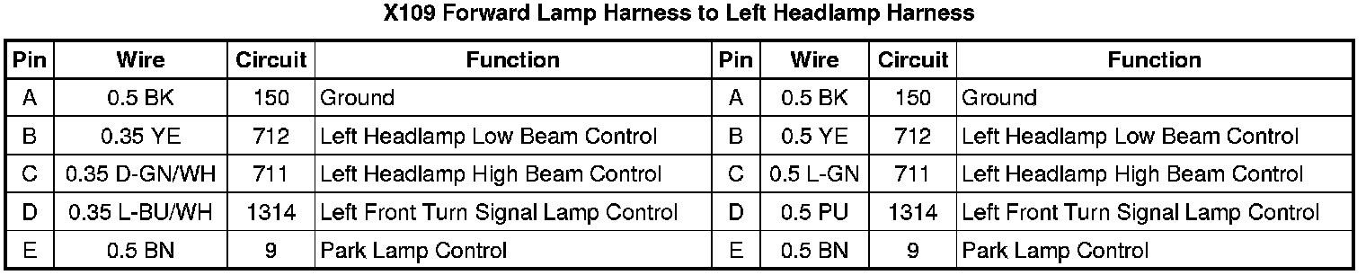 X109 Forward Lamp Harness to Left Headlamp Harness