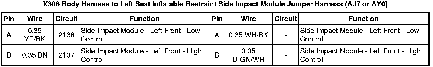 X308 Body Harness to Left Seat Inflatable Restraint Side Impact Module Jumper Harness (AJ7 or AY0)