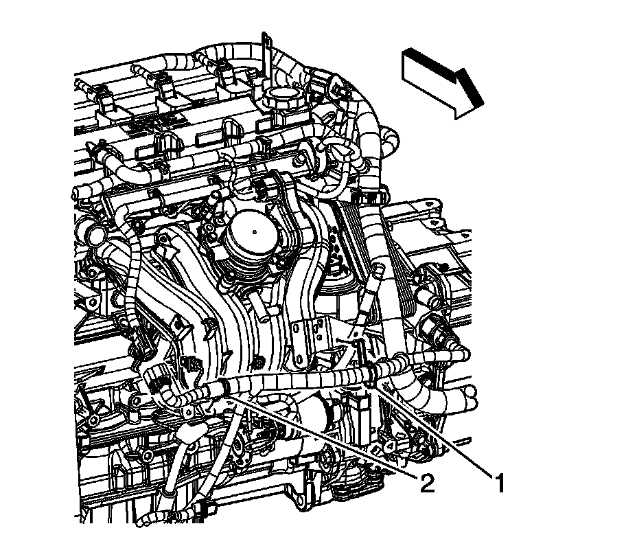 2. Remove the engine harness clip (1) from the oil level indicator tube.