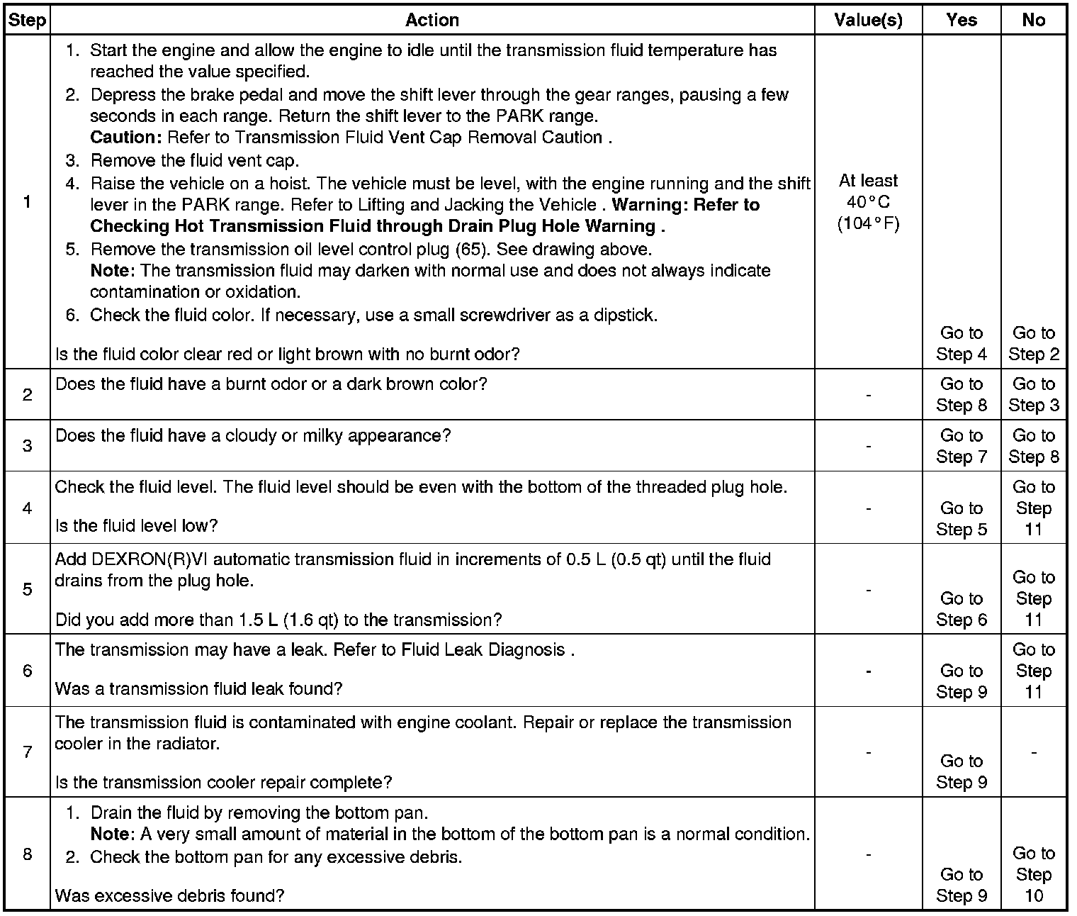 The oil level control plug (65) is located on the torque converter side of the transmission right hand axle seal passenger side.