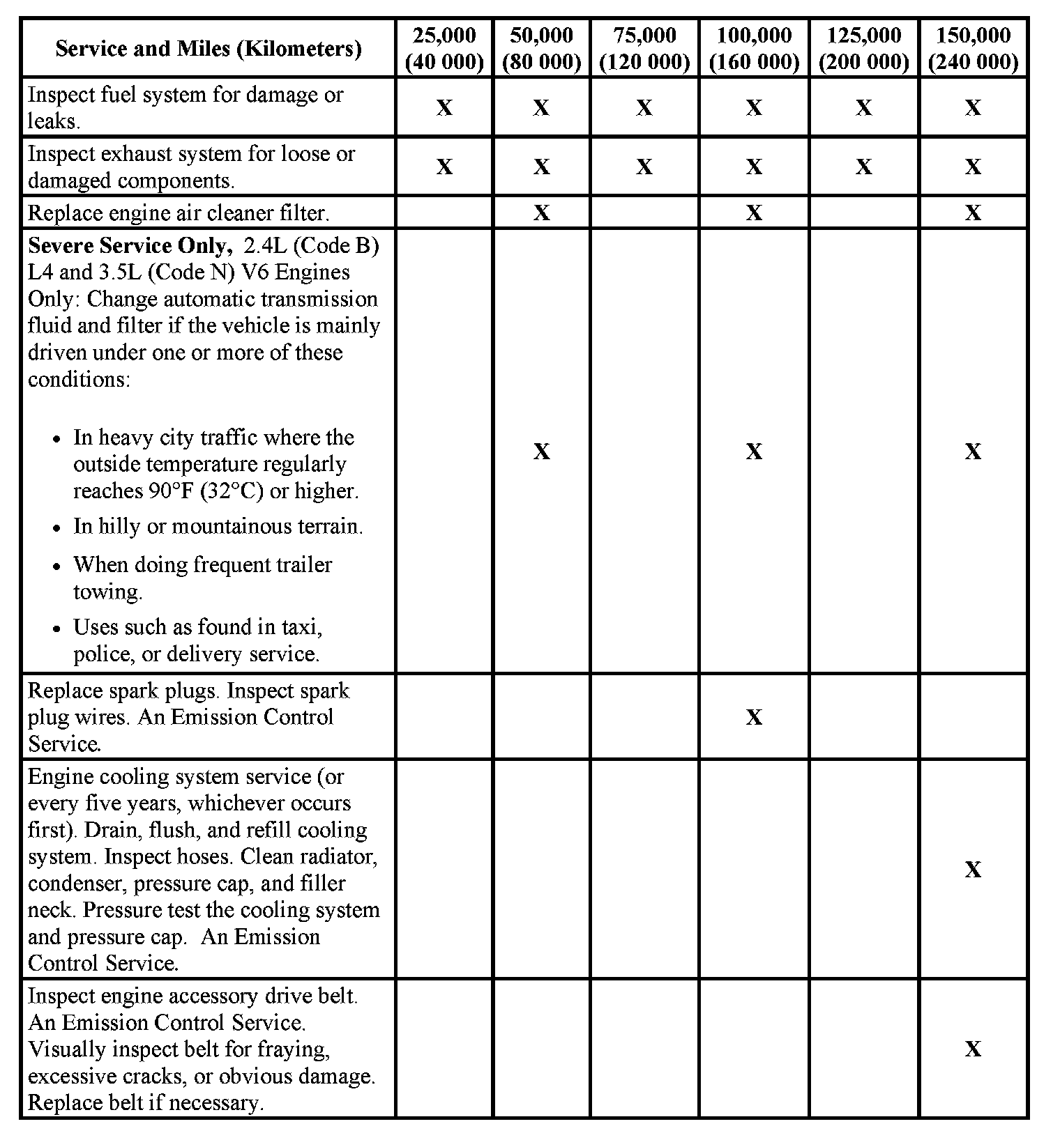 service (I or II) after the indicated miles (kilometers) shown for each item.