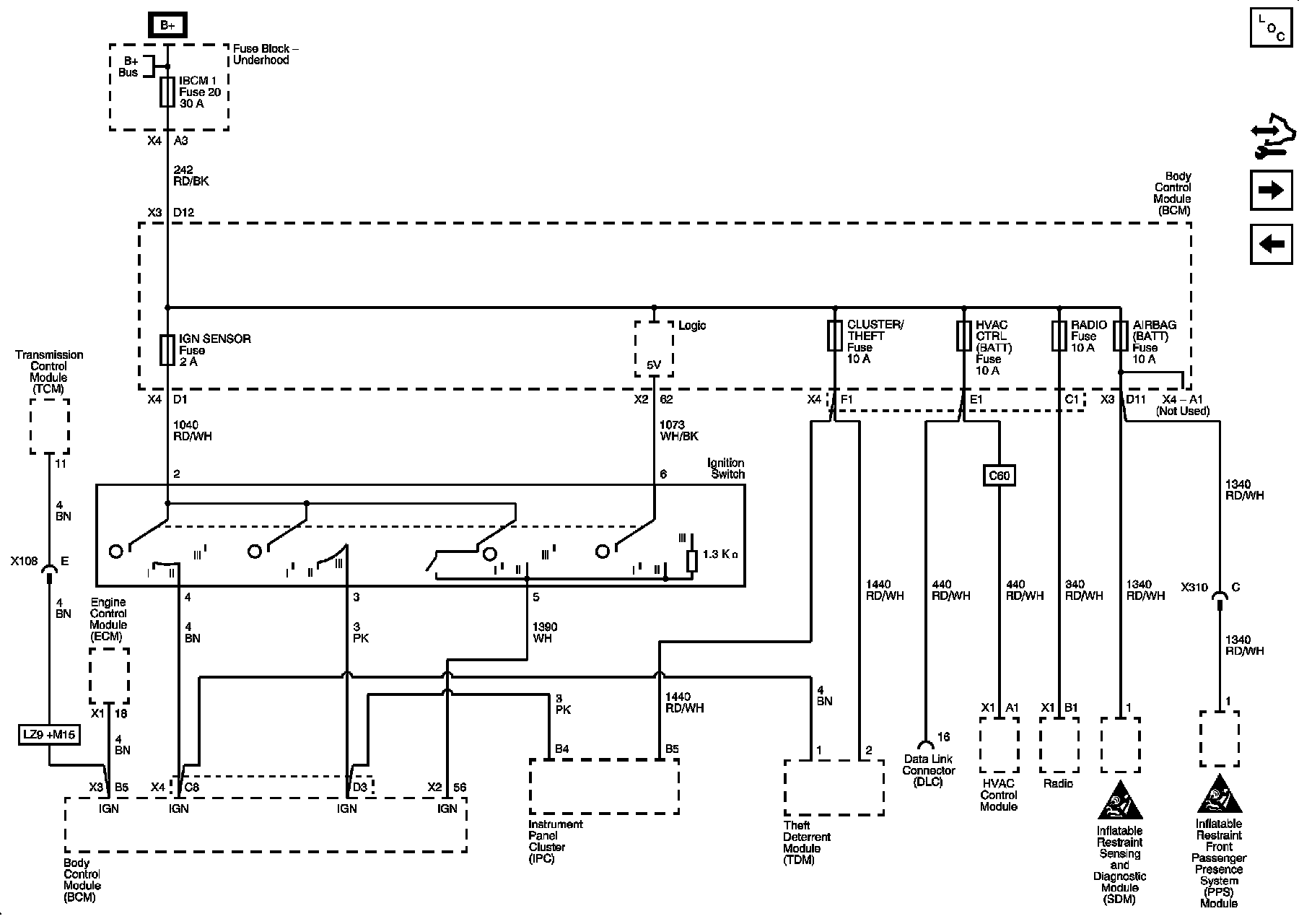 Underhood Fuse Block - IBCM 1, BCM, AIRBAG (BATT), CLUSTER/THEFT, HVAC CTRL (BATT), IGN SENSOR and RADIO Fuses and