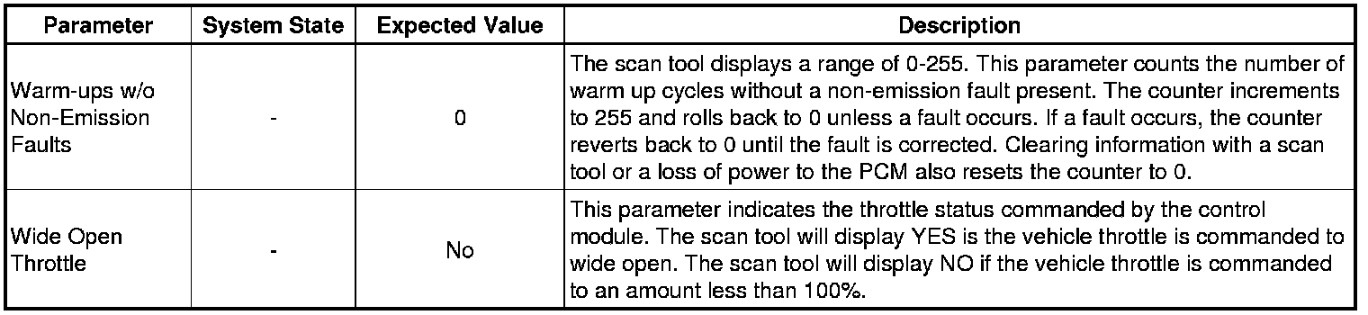 Only the parameters listed below are referenced in this service manual for use in diagnosis. If all values are within the typical range described below, refer to Symptoms - Engine Controls (- Symptoms - Engine Controls) for the 2.4L engine for diagnosis.