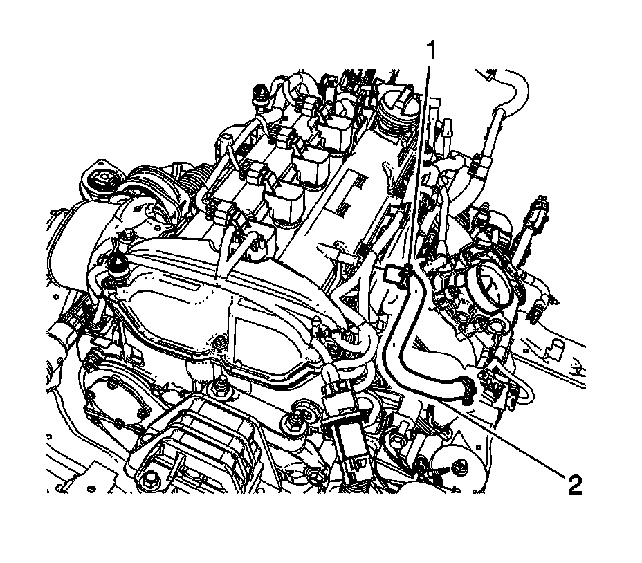 3. Remove the PCV hose (2) from the camshaft cover.