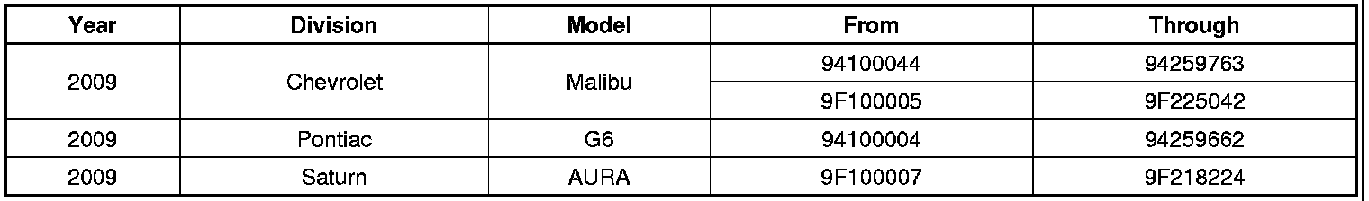 Involved are certain Chevrolet Malibu, Pontiac G6, and Saturn AURA vehicles equipped with a 4-speed transmission (RPO ME7/MN5) and built within these VIN breakpoints: