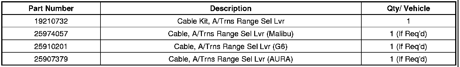 Dealers are to install a retainer over the transmission shift cable end fitting. If the end fitting tabs are fractured, the shift cable must be replaced.