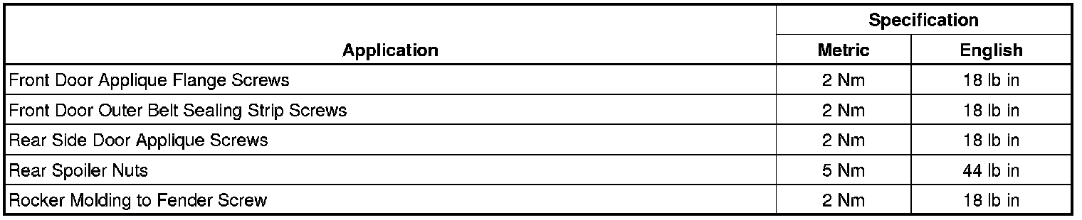 Fastener Tightening Specifications