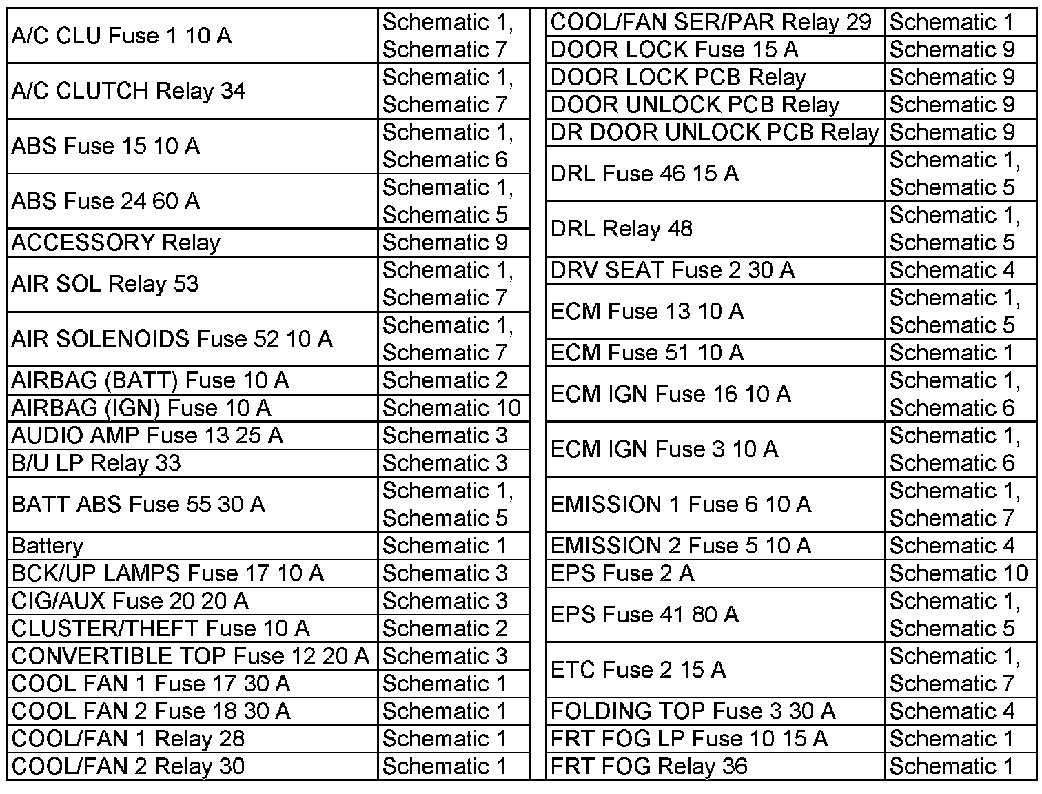 A/C CLU Fuse 1 10 A-FRT FOG Relay 36: