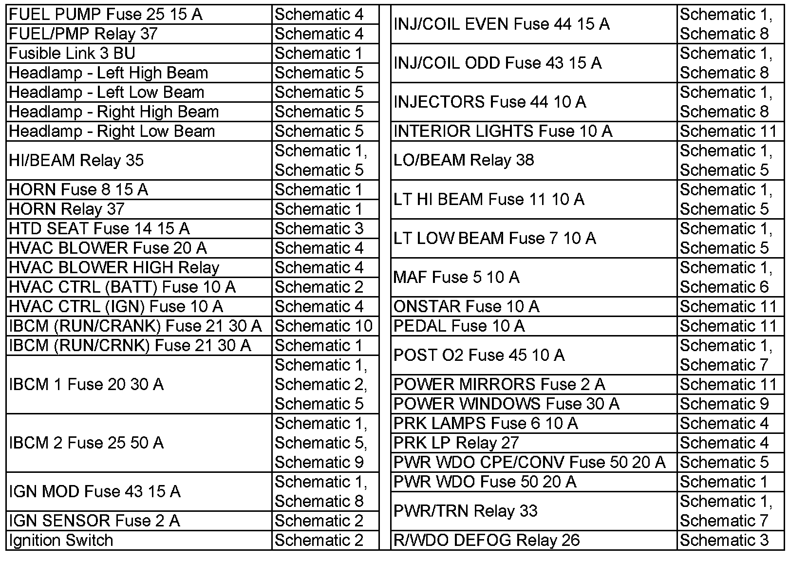 FUEL PUMP Fuse 25 15 A-R/WDO DEFOG Relay 26: