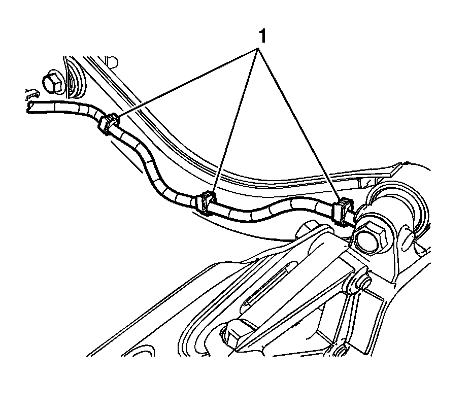 3. If the vehicle is equipped with ABS, disconnect the ABS routing harness connectors (1) and position the harness aside. Note the routing for assembly.