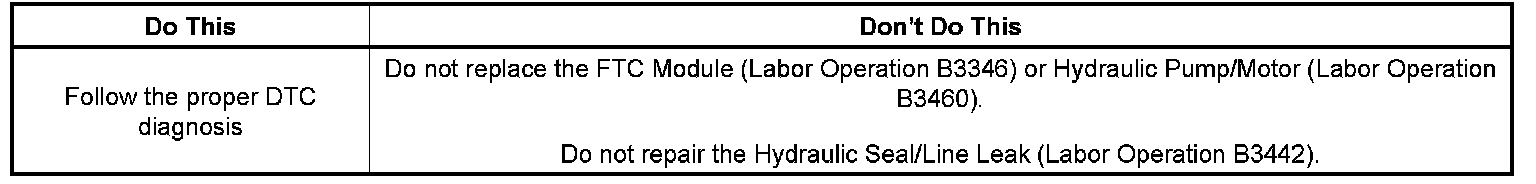 DO NOT replace the FTC module or the hydraulic pump/motor. Instead, follow the diagnostics below.